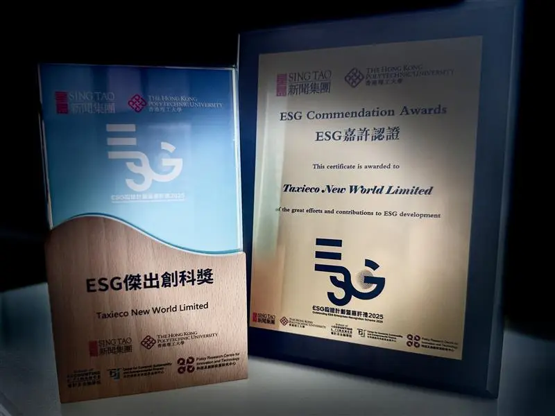 在10月21日舉行的「ESG認證嘉許暨永續發展論壇2025」上,車載AIoT設備及服務供應商Taxieco New World Limited(以下簡稱Taxieco)憑藉其創新的技術實踐,在眾多企業中脫穎而出,獲頒「ESG傑出創科獎」。